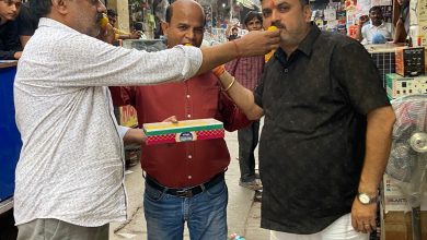 मार्केट के लोगों ने एक दूसरे को खिलायी मिठाई ॥