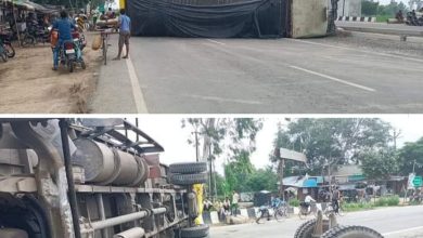 चाय की पत्ती लेकर दिल्ली जा रहा कंटेनर स्टेरिंग फेल होने के चलते हाईवे पर पलटा