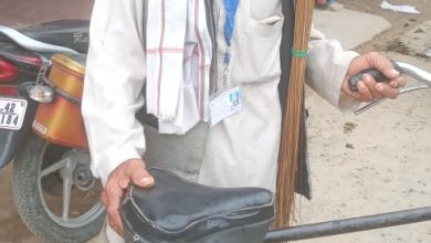 आप प्रत्याशी पेट में झाड़ू बांध कर सायकिल से कर रहे प्रचार