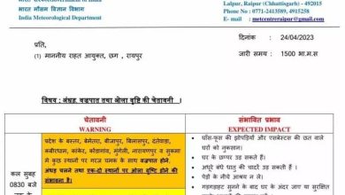 पूरन वर्मा/ रायपुर :- छत्तीसगढ़ में अगले 24 घंटे में अंधड़, बारिश, ओलावृष्टि और बिजली गिरने की संभावना जताई गई…