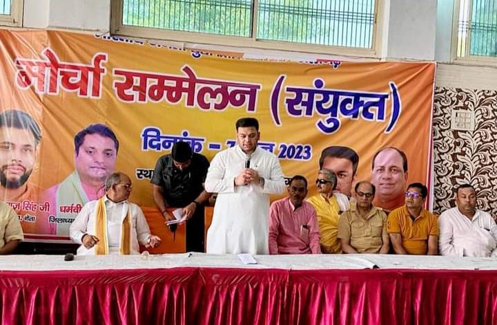 अलीगढ के कस्बा अतरौली कॉलेज रोड स्थित नंदन वाटिका गेस्ट हाउस में आज दिनांक 7 जून 2023 को संयुक्त सम्मेलन मोर्चा व टिफिन सह भोज का आयोजन हुआ जिसके उपरांत बेसिक शिक्षा राज्यमंत्री संदीप सिंह संजू भैया एटा सांसद राजवीर सिंह राजू भैया ने जनसभा को संबोधित किया इस अवसर पर एटा सांसद राजवीर सिंह राजू भैया बेसिक शिक्षा मंत्री संदीप सिंह संजू भैया अलीगढ़ सांसद सतीश गौतम अतुल गुप्ता आलोक वार्ष्णेय राष्ट्र सौरभ जितेंद्र शर्मा कपिल गुप्ता युवा मोर्चा अध्यक्ष धर्मवीर सिंह लोधी उदय पाल सिंह लोधी यज्ञ पाल सिंह लोधी यतेंद्र लोधी पंकज बघेल सतीश चंद्र लोधी चाचा आदि लोगों की उपस्थिति रही