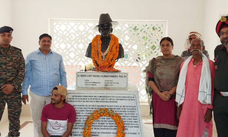गोरखा रायफल्स के सेन्टर कमान्डेन्ट नवदीप सिंह अपनी टीम सहित कारगिल युद्ध के महानायक परमवीर चक्र विजेता अमर शहीद कैप्टन मनोज कुमार पांडेय के पैतृक गांव ब्लाॅक कसमण्डा के रूढ़ागांव पहुंचकर अमर शहीद कैप्टन मनोज कुमार पांडेय की प्रतिमा पर पुष्प चक्र अर्पित करते हुए नमन किया तथा शहीद की जन्म स्थली पर निवास कर रहे शहीद के चाचा कौशल चन्द पांडेय से शिष्टाचार भेट करके आशीर्वाद लिया और शहीद के नाम से बनी लाइब्रेरी व अमृत वाटिका को देखा और लाइब्रेरी मे पढ़ने योग्य पुस्तके व अमृत वाटिका मे औषधी के पौधे सेना की तरफ से लगवाने का आश्वासन दिया इस मौके पर उपजिलाधिकारी सिधौली राखी वर्मा, नवागत हे खण्ड विकास अधिकारी कसमण्डा राजेश कुमार तिवारी,एडीओ आई एस वी शिवप्रकाश दुबे व सैकड़ों की संख्या में क्षेत्रवासी उपस्थित रहे!
