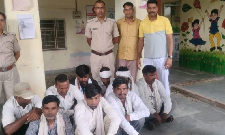 पुलिस अधीक्षक धौलपुर मनोज कुमार IPS के निर्देशन में व वृत्ताधिकारी मनियां मनोज गुप्ता RPS के निकटतम सुपरवीजन में अवैध जुआ सट्टा के विरुद्ध कार्यवाही करते हुये थानाधिकारी मनियां लाखनसिंह उ.नि. एवं टीम द्वारा 9 व्यक्तियों को जुआ खेलते हुये मय जुआ उपकरण व जुआ राशि 17750/- रुपये सहित पकड़ा। अवैध जुआ सट्टा के विरुद्ध कार्यवाही करते हुये मुखविर की सूचना पर लाखनसिंह उ.नि. थानाधिकारी मनियां मय टीम द्वारा खेरली गांव के पास से मुल, हुकमसिंह पुत्र निहालसिंह जाति कुशवाह उम्र 39 साल निवासी बाल गोविन्द का पुरा थाना मनियां, कप्तानसिंह पुत्र छिदू जाति कुशवाह उम्र 25 साल निवसी सलिका का अड्डा मजरा खेरली थाना मनियां, सतीशचन्द पुत्र प्रेमसिंह जाति कुशवाह उम्र 30 साल निवासी बालगोविन्द का पुरा थाना मनियां, प्रेमसिंह पुत्र नारायनसिंह जाति कुशवाह जाति कुशवाह उम्र 38 साल निवासी खेरली थाना मनियां, पपेश पुत्र बाबूलाल जाति कुशवाह उम्र 28 साल निवासी लूला का पुरा थाना मनियां, भवानी पुत्र बीरीसिंह जाति कुशवाह उम्र 38 साल निवासी बाल गोविन्द का पुरा थाना मनियां, मंगलसिंह पुत्र भरतसिंह जाति कुशवाह उम्र 32 सल निवासी रजुआ का अड्डा मजरा खेरली थाना मनियां, सतीश पुत्र मोहनसिंह जाति कुशवाह उम्र 34 साल निवासी लूला का पुरा थाना मनियां, राजेश पुत्र अमरसिंह जाति कुशवाह उम्र 34 साल निवासी बाल गोविन्द का पुरा थाना मनियां जिला धौलपुर को सार्वजनिक स्थान जुआ खेलते हुये मय जुआ उपकरण व जुआ राशि 17750/- रुपये सहित पकड़ा। जिनके विरुद्ध प्रकरण पंजीबद्ध कर अनुसन्धान जारी है।