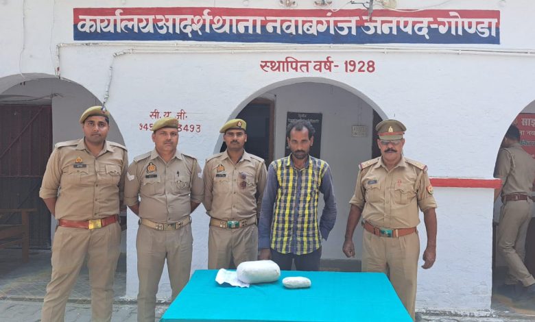 जनपद गोंडा में चलाए जा रहे अभियान में अवैध मादक पदार्थों की तस्करी व बिक्री मे संलिप्त अभियुक्तों के विरुद्ध कार्यवाही करते हुए उ0नि0 सत्येन्द्र वर्मा मय टीम थाना नवाबगंज द्वारा क्षेत्र भ्रमण के दौरान अभियुक्त सुर्यबली यादव पुत्र राममूरत निवासी लकड़मंडी थाना नवाबगंज गोंडा को गिरफ्तार कर उनके कब्जे से 01 किलो 100 ग्राम अवैध गाँजा बरामद कर अभियुक्त के विरूद्ध थाना नवाबगंज में एन0डी0पी0एस0 एक्ट के तहत अभियोग पंजीकृत कर विधिक कार्यवाही की गयी।