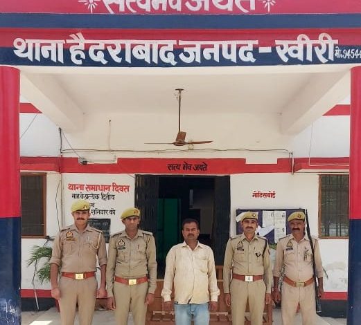 पुलिस अधीक्षक महोदय खीरी, श्री गणेश प्रसाद साहा के निर्देशन व अपर पुलिस अधीक्षक महोदय खीरी के निकट पर्यवेक्षण में संपूर्ण जनपद में अपराध की रोकथाम व वांछित अभियक्तों की गिरफ्तारी हेतु चलाए जा रहे अभियान के अंतर्गत आज दिनांक 15.06.2023 को थाना हैदराबाद पुलिस द्वारा मु0अ0सं0 240/23 धारा 2/3 यूपी गैंगस्टर एक्ट में वांछित अभियुक्त फहीम पुत्र हफीमुल्ला उर्फ हकीमुल्ला खाँ नि0 ग्राम भल्लिया बुजर्ग को थाना क्षेत्र के ग्राम भल्लिया बुजुर्ग के मोड़ के पास से गिरफ्तार किया गया। गिरफ्तार अभियुक्त का चालान माननीय न्यायालय भेजा जा रहा है।