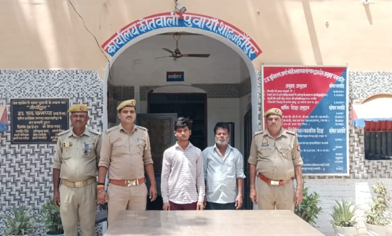 दिनांक 16.06.2023 को सर्वेश कुमार पुत्र रामलाल निवासी ग्राम बनगवां थाना पुवायां जनपद शाहजहांपुर की दाखिला तहरीर के आधार पर वावत विरुद्ध 1 दीपक पुत्र विनोद (पति) 2 विनोद पुत्र नामालूम(ससुर) 3 गुड्डी पत्नी विनोद (सास) 4 प्रदीप पुत्र विनोद (जेठ) सर्व निवासी गढ़ उमरसांडा थाना पुवायां जनपद शाहजहांपुर द्वारा बादी की पुत्री से अतिरिक्त दहेज में सोने की चैन व मोटरसाइकिल व पांच लाख नगद की मांग करना बा मारपीट कर जान से मार देने के संबंध में पंजीकृत कराया गया था उक्त अभियोग मैं नामित अभियुक्त गढ़ को श्रीमान पुलिस अधीक्षक महोदय द्वारा तत्काल गिरफ्तारी हेतु निर्देश दिए गए थे जिस पर श्रीमान क्षेत्राधिकारी महोदय श्री पंकज पंत द्वारा प्रभारी निरीक्षक श्री प्रदीप राय के नेतृत्व में तत्काल टीम गठित कर मुकदमा उपरोक्त में नामजद दो अभियुक्त गण 1 विनोद पुत्र रामकुमार 52 वर्ष 2 दीपक पुत्र विनोद उम्र 23 वर्ष को आज दिनांक 16 6 2023 को मुखबिर की सूचना पर नाहिल चौराहे पर समय 12:15 बजे गिरफ्तार किया गया है जिसके विरुद्ध आवश्यक कार्यवाही विधिक कार्यवाही कर मा0 न्यायालय के समक्ष पेश किया जा रहा है