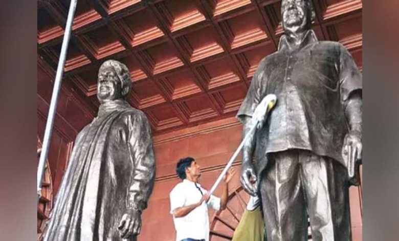 मायावती, कांशीराम और अंबेडकर की बसपा ऑफिस से हटाई गई मूर्ति