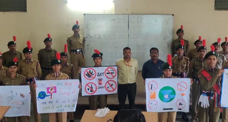 बिलासपुर:- 7 छत्तीसगढ़ एन. सी. सी. बटालियन के कमान अधिकारी कर्नल अमिताभ श्रीवास्तव के निर्देशानुसार चौकसे इंजीनियरिंग कॉलेज की एन सी सी इकाई द्वारा आज विश्व नशा मुक्ति दिवस मनाया गया। कार्यक्रम की शुरुआत में सभी छात्रों एवम् अधिकारियों द्वारा नशा मुक्ति हेतु सपथ ली गई। कार्यक्रम में उपस्थित डॉ बरूण यादव एनएसएस अधिकारी द्वारा छात्रों को संबोधित करते हुए कहा गया की छोटे छोटे कार्य से ही बड़े कार्य करने की प्रेरणा मिलती है तथा हम सब केवल स्वयं एवम अपने आस पास के लोगो को नशा मुक्त कर देने से यह अभियान सफल हो सकता है। छात्र सैनिकों द्वारा नशा मुक्ति पर कैडेट आकांक्षा, मयंक, द्वारा नशा मुक्ति हेतु भाषण दिया गया। कैडेट प्रियंका, चंदन, आकांक्षा, मल्लिका, गौतम द्वारा नशा मुक्ति पर पोस्टर बनाए गए। कॉलेज के एनसीसी अधिकारी लेफ्टिनेंट एस पी श्रीवास द्वारा सभी एनसीसी के कैडेट को नशा न करना और नशे के विरुद्ध कार्य करने के लिए प्रेरित किया गया। एन. सी. सी. छात्रों के इस जनकल्याण की दिशा में किए गए अदम्य प्रयास को कॉलेज के प्रबंध निदेशक डॉ आशीष जायसवाल द्वारा खूब सराहा गया एवम सभी कैडेट को जन कल्याण के कार्य हेतु उत्साहित किया गया।
