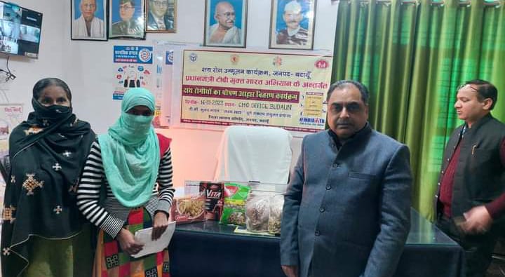 उन्होंने सभी अधिकारियों को बताया कि यदि उपचार के दौरान कोई भी समस्या आये तो सम्बन्धित टी0बी0 स्टॉफ से जानकारी लें। उन्होने रोगियों को यह भी आश्वस्त किया कि वह रोगियों को समय समय फोन करके रोगियों के उपचार की जानकारी लेते रहेंगें। अन्त में सभी अधिकारियों ने प्रोटीनयुक्त खाद्य सामग्री वितरित की। इस अवसर पर डी०पी०सी० आसिफ रजा, डी०पी०पी०एम०सी० संदीप राजपूत व एस०टी०एस० सुदेश सक्सेना उपस्थित रहे।