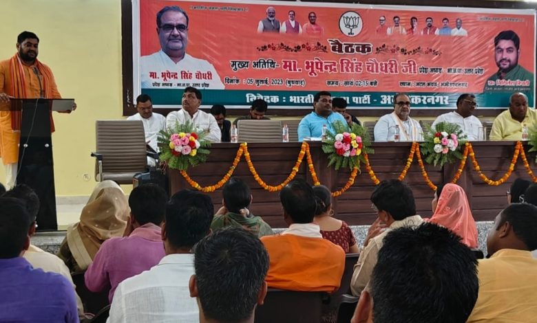 भाजपा प्रदेश अध्यक्ष भूपेंद्र सिंह चौधरी,प्रभारी मंत्री गिरीश चंद्र यादव,जिला प्रभारी क्षेत्रीय महामंत्री विजय प्रताप सिंह,जिलाध्यक्ष डाक्टर मिथिलेश त्रिपाठी,विधान परिषद सदस्य डाक्टर हरि ओम पाण्डेय,जिला पंचायत अध्यक्ष श्याम सुंदर वर्मा के साथ डाक्टर श्यामा प्रसाद मुखर्जी एवम पण्डित दीन दयाल उपाध्याय की चित्र पर पुष्प अर्पित एवम दीप प्रज्ज्वलित कर बैठक का शुभारंभ किया।बैठक को सम्बोधित करते हुए भाजपा प्रदेश अध्यक्ष भूपेंद्र सिंह चौधरी ने सम्पर्क से समर्थन और घर घर सम्पर्क अभियान की समीक्षा कर कार्यकर्ताओं से अभियान को और प्रभावशाली ढंग से करते हुए 10 जुलाई तक शत प्रतिशत कार्य पूरा करने का निर्देश दिया।कहा कि भाजपा के सभी अभियान और कार्यक्रमों को पार्टी के ऐप पर डाउनलोड अवश्य करें।कहा कि राजनैतिक रूप से उत्तर प्रदेश का अपना महत्व पूर्ण स्थान है।संगठन को भाजपा कार्यकर्ताओं से बड़ी उम्मीद है।जिस पर खरा उतरना हम सब के लिए चुनौती है।उन्होंने कहा कि आपके जनता के बीच में जाकर कार्य करने से हर चुनाव को हम जीत सकते हैं और परिणाम हमारे पक्ष में सकारात्मक रहेगा।कहा कि अगर कहीं का चुनावी परिणाम हमारे पक्ष में नहीं भी आता है तो भी हम बेहतर परिणाम के लिए निरंतर क्रियाशील रहें।उन्होंने सभी आभार व्यक्त करते हुए ऊर्जा का संचार किया।कार्यकर्ताओं के मान सम्मान के लिए संगठन सदैव तत्पर है।