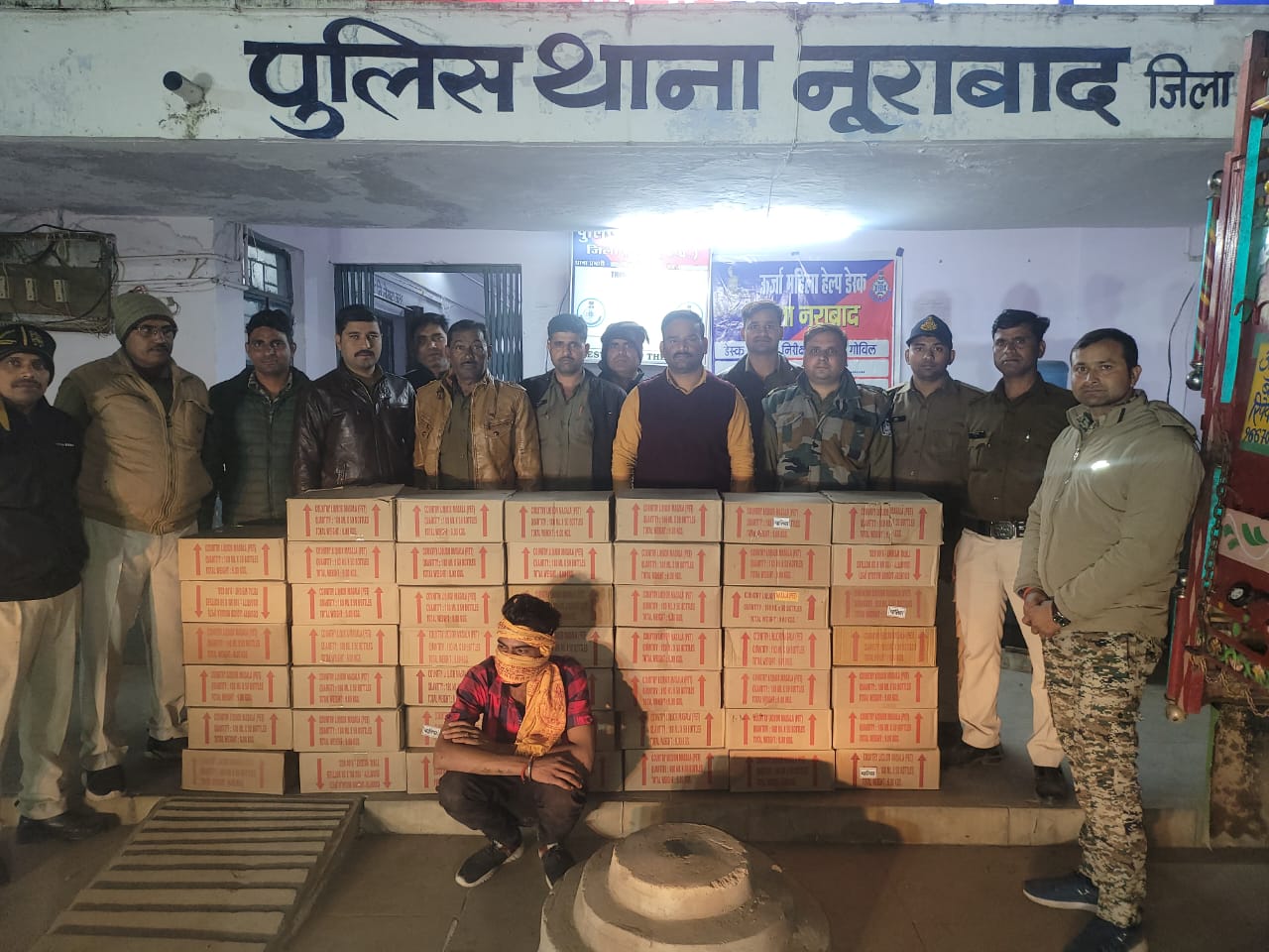 थाना नूराबाद पुलिस द्वारा अवैध शराब तस्करो के विरुद्ध लगातार कार्रवाई कर 48 पेटी देसी मदिरा मसाला मय बिलोरो लोडिंग कुल कीमत 9,40,000/रुपए जप्त कर एक आरोपी को गिरफ्तार किया