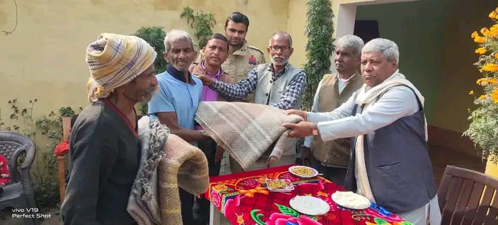 विकासखंड खुटार के ग्राम रौतापुर कला में गरीब, बेसहारा एवं जरूरतमंद लोगों को कंबल वितरित