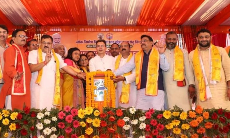 शाहजहांपुर । तिलहर में उ०प्र०सेतु निगम द्वारा रेलवे क्रासिंग 334बी पर बनाये जा रहे उपरिगामी सेतु एवं लोक निर्माण विभाग की 4084.97 लाख की लागत से संयुक्त 24 परियोजनाओं का लोकार्पण एवं शिलान्यास प्रदेश के लोक निर्माण मंत्री जितिन प्रसाद द्वारा तिलहर में सम्पन्न हुआ।