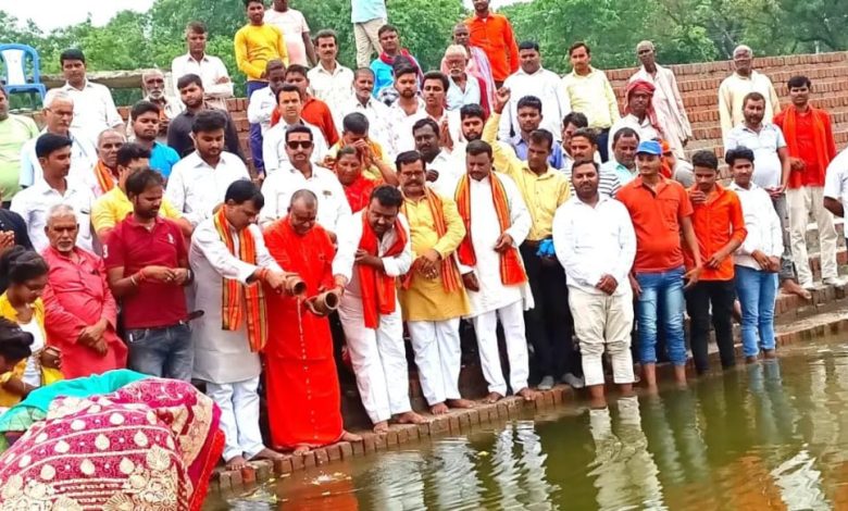 बासी नदी तट पर निर्मित अमृत सरोवर में माँ नारायणी का जल किया गया अर्पित