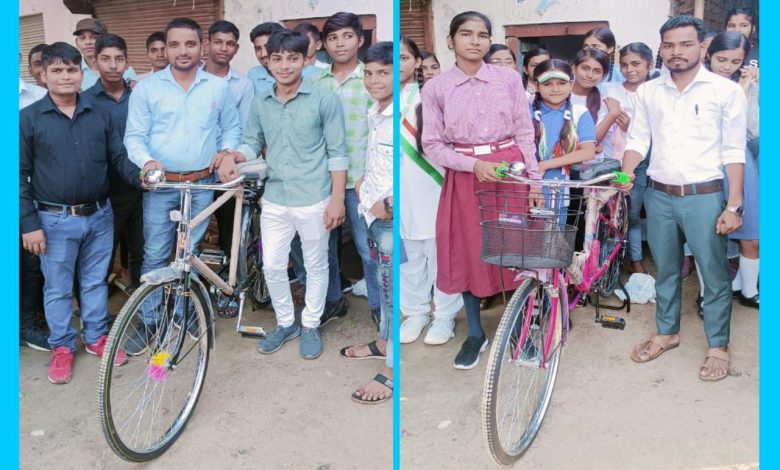 हैरिग्टनगंज कोचिंग क्लासेस में मेधावी छात्रों को साइकिल देकर सम्मानित किया गया।