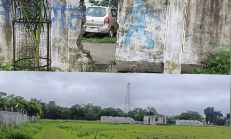 नगर का एकमात्र खेल मैदान उपेक्षा का शिकार। कीचड़, गांजर घास, सांप बिच्छू से परेशान खिलाड़ी, बाउंड्री वाल और बैक रूम हुआ छतिग्रस्त।