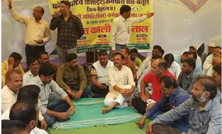 सहकारी संस्था के कर्मचारियों की प्रदेश सरकार के खिलाफ अनिश्चित कालीन हड़ताल में भैंसदेही विधायक धरमू सिंह के साथ कांग्रेस नेता हर्षवर्धन धोटे ने सम्मिलित होकर उनकी मांगों का समर्थन किया।