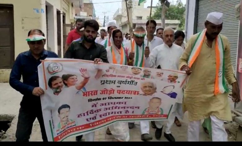 भारत जोड़ो यात्रा की प्रथम वर्ष गांठ पर कांग्रेस कार्यकर्ताओ ने निकली पद यात्रा॥