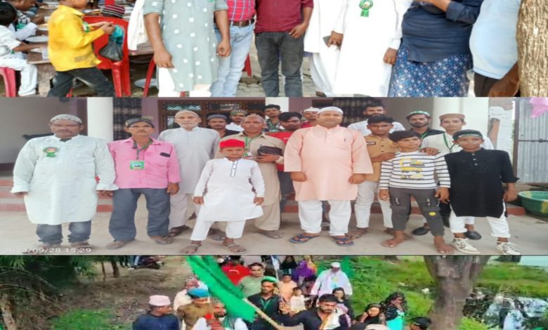 मिल्कीपुर क्षेत्र के अलग-अलग गांवो में बड़े हर्षोल्लास के साथ जुलूसे मोहम्मदी निकाला गया जहा आज ही के दिन गणेश जी की मूर्ति का विसर्जन होना है जिसे लेकर दोनो समुदाय के लोगों ने भाईचारा कायम रखते हुए अपने अपने तेहवारो को सकुशल संपन्न किया जिसे लेकर लोगो को पुलिस प्रशासन का सहयोग पूरी तरह से मिला प्रशासन के सहयोग से सौहार्दपूर्ण तरीके से शांतिपूर्वक जुलूस निकाला गया आपको बता दें ईद मिलादुन्नबी को भारत के सभी मुसलमान काफी जोर-शोर और पूरे एहतराम के साथ मनाते हैं। इसे ईद-ए-मिलाद या बारावफात के नाम से भी जानते है।बता दें कि इस्लामिक कैलेंडर के मुताबिक, 12 रबी-उल-अव्वल की तारीख में होने वाला त्योहार मुस्लिम समुदाय के लिए काफी खुशी का दिन होता है इसी दिन पैगंबर हजरत मोहम्मद साहब की पैदाइश हुई थी और इसी तारीख को ही वो इस दुनिया से रूख्सत फरमा गये थे। पैगंबर हजरत मोहम्मद साहब इस्लाम धर्म के संस्थापक हैं। इस दिन को दुनिया भर के मुसलमान काफी उरूज के साथ मनाते हैं। उनके बताए पैगाम को दीनी महफिलों में बताया जाता है और उस पर अमल करने की बारें में बताया जाता है। विशेष नमाजें मुसलमान अदा करते हैं। साथ ही पूरे दिन और रात इस उत्सव को मनाया जाता है। इस तारीख को देखते हुए मिल्कीपुर क्षेत्र के ग्राम सभा सारी गांव में भी बड़ी संख्या में लोग समलित हो कर जुलुसे मोहम्मदी निकाला गया जुलूस सारी गांव से होते हुए हल्ले, घोसी का पुरवा, खजुरी मिर्जापुर, करमदंडा, खिहारन, गांव होते हुए अपने गांव आ कर मुकम्मल किए जुलूस के लिए जगह जगह पर लोग के द्वारा अपने घरों पर शिरनी व बिरयानी का इंतजाम कर जुलूस में चल रहें लोगो के सामने पेस की जुलूस की अगवानी में कादरी साहब, असगर अली, अब्दुल मजीद, इरफान अहमद बंटी, हसनैन, इबरार, अब्दुल कय्यूम, जुनेद अहमद, मो शरीफ, एजाज अहमद, नेहाल, मुख्तार उर्फ पुईया, एम हसन, तौहीद उर्फ धत्ते, स्वराब, अब्दुल कुद्दुस, शेरे बाबू, शाहरुख आदि लोग बड़ी संख्या में उपस्थित रहें