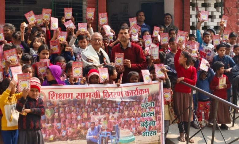 अधिवक्ता आर0के0 सिंह के जन्मोत्सव पर बच्चों को भेंट हुई शिक्षण सामग्री, हुआ पौधरोपण