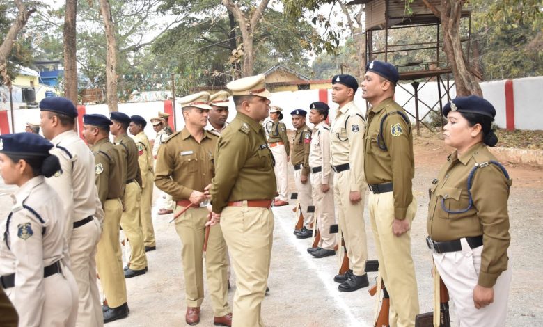 बस्तर पुलिस अधीक्षक श्री शलभ कुमार सिन्हा द्वारा आज रक्षित केन्द्र जगदलपुर में जनरल परेड का निरीक्षण किया गया। दौरान निरीक्षण के श्रीमान पुलिस अधीक्षक महोदय द्वारा पुलिस अधिकारियों/कर्मचारियों की गणवेश एवं कीट का निरीक्षण किया गया । परेड में अधिकारियों/कर्मचारियों की समस्या पूछी गयी जिनके त्वरीत निवारण हेतु संबंधित अधिकारियों को निर्देशित किया गया। इसके उपरांत रक्षित केन्द्र के समस्त शाखा का निरीक्षण किया गया। उक्त अवसर पर अतिरिक्त पुलिस अधीक्षक श्री महेश्वर नाग, रक्षित निरीक्षक मधुसूदन नाग एवं अन्य अधिकारी/कर्मचारी उपस्थित रहे।