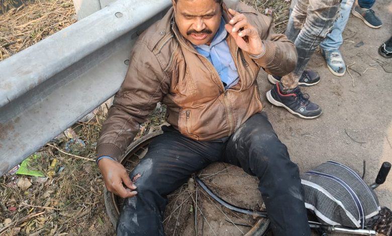 एलेन कूपर शोरूम के पास टेंपो डाला चालक पिंटू कुमार पुत्र रमेश कुमार धना खोरी थाना हरवंश मोहन कानपुर ने डीजे का सामान लेकर कानपुर से ग्राम सरोसा थाना अजगैन उन्नाव जा रहा था एलेन कूपर के पास एक्सीडेंट कर गया टेंपो डाला में डीजे मालिक सूरज पुत्र रामस्वरूप रावत, रंजीत रावत पुत्र मोहनलाल निवासी गण ग्राम सरोसा थाना अजगैन उन्नाव बैठे थे चोटिल हो गए डाला जब पलटा तो साइकिल से जा रहे रामेश्वर वर्मा पुत्र वंश गोपाल 490 /5 इंदिरा नगर चोटिल हो गए जिनके पैरों में काफी चोट आई चोटिल तीनों लोगों को तत्काल 108 नंबर से सदर जिला अस्पताल भिजवाया गया