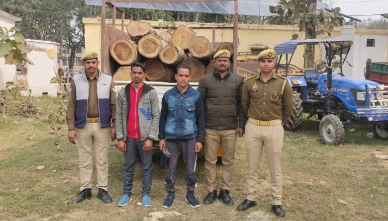 *हर्रैया/बलरामपुर।* पुलिस अधीक्षक बलरामपुर केशव कुमार के निर्देशन में जनपद में वृक्षों के अवैध कटान पर पूर्णत: अंकुश लगाए जाने हेतु चलाए जा रहे अभियान के क्रम में अपर पुलिस अधीक्षक श्रीमती नम्रिता श्रीवास्तव व क्षेत्राधिकारी ललिया राधारमण सिंह के पर्यवेक्षण में एवं थानाध्यक्ष थाना हरैया अखिलेश कुमार पान्डेय के कुशल नेतृत्व में आज दिनांक 24/01/2023 को थानाध्यक्ष अखिलेश कुमार पान्डेय मय हमराही उपनिरीक्षक होसिला प्रसाद, हेड कॉन्स्टेबल विनोद यादव, कॉन्स्टेबल लक्ष्मण यादव, कॉन्स्टेबल विश्वास यादव मय वाहन सरकारी के देखभाल थाना क्षेत्र, रात्रि गस्त में मामूर थे। जनपद श्रावस्ती वार्डर पर स्थित बैरियर चेकिंग पर तैनात हेड कॉन्स्टेबल उपेन्द्र कुमार यादव व कॉन्स्टेबल सुरेशचन्द्र तिवारी के साथ संदिग्ध व्यक्ति/वाहन चेकिंग के दौरान एक पिकअप पर लदी हुई 14 बोटा जंगली सागौन की लकडी सहित दो अभियुक्तों को गिरफ्तार कर थाना स्थानीय पर मुकदमा अपराध संख्या– 12/2023 धारा 379/411 भा०द०वि० व फारेस्ट एक्ट 26/27/29/31/51 डब्ल्यूएलपी एक्ट का अभियोग पंजीकृत कर अभियुक्तों को माननीय न्यायालय भेजा जा रहा है।