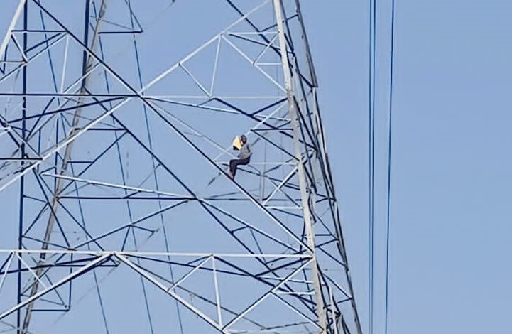 युवक चकमार्ग पटाई के विरोध में चढ़ा हाई टेंशन टावर पर