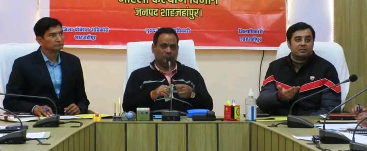 फोटो में कलेक्ट्रेट सभागार में समीक्षा बैठक के दौरान जिलाधिकारी