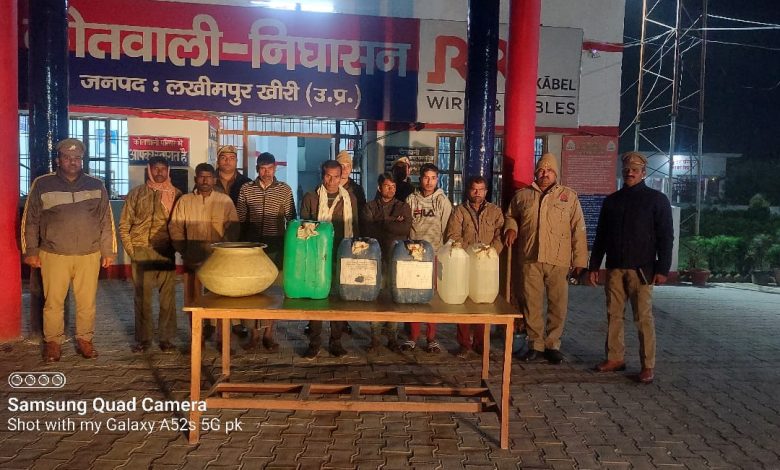 बीती रात सीओ निघासन संजय नाथ तिवारी के नेतृत्व में 190 लीटर अवैध कच्ची शराब बरामद कर 09 अभियुक्तों के खिलाफ मुकदमा दर्ज कर गिरफ्तार किया गया।