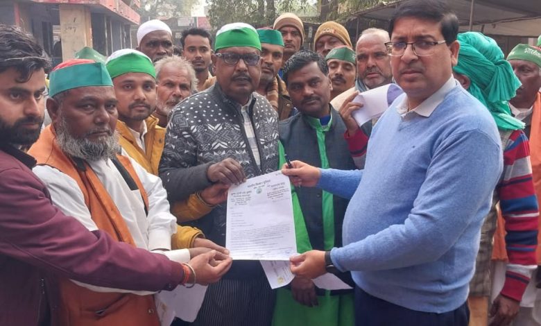 उतरौला / बलरामपुर : संयुक्त किसान मोर्चा के आवाहन पर भारतीय किसान यूनियन समाज एवं भारतीय किसान क्रांति यूनियन बलरामपुर के पदाधिकारियों ने उत्तर प्रदेश के गन्ना किसानों की समस्याओं को लेकर महामहिम राज्यपाल महोदया उत्तर प्रदेश को संबोधित मांगपत्र उप जिलाधिकारी महोदय उतरौला को सौंपा गया। बताते चलें कि आज 2 फरवरी 2023 को गन्ना किसानों की समस्याओं के प्रति दिखाई जा रही उदासीनता के बारे में शांति पूर्ण ढंग से धरना प्रदर्शन करते हुए भाकियू समाज जिलाध्यक्ष कृष्ण मुरारी एवं क्रांति यूनियन जिलाध्यक्ष मोहम्मद खलील शाह के अध्यक्षता नारे बाजी एवं धरना प्रदर्शन करते हुए उतरौला तहसील के प्रांगण में गन्ना किसानों की समस्याओं से संबंधित मांगपत्र महामहिम राज्यपाल महोदया उत्तर प्रदेश को संबोधित ज्ञापन उप जिलाधिकारी महोदय संतोष कुमार ओझा को सौंपा गया। जिलाध्यक्ष कृष्ण मुरारी एवं मोहम्मद खलील शाह ने उत्तर प्रदेश सरकार से मांग किया कि कृषि मंत्री ने घोषणा की थी कि 27 जनवरी 2023 तक गन्ना का मूल्य सरकार तय घोषित कर देगी लेकिन आज तक गन्ना मूल्य तय नहीं किया गया।यह किसानों के साथ भेदभाव और सरकार की गन्ना उत्पादक किसानों के प्रति उदासीनता को दर्शाता है। मिलों में गन्ने की पिराई शुरू हुए 3 महीने हो चुके है किसान की पर्ची पर गन्ने की आपूर्ति के बाद मूल्य दर्ज नहीं हो रहा है और किसान गहरे आर्थिक संकट से गुजर रहे है इसलिए हम सभी किसान संगठन आज के विरोध कार्यक्रम के द्वारा आपके समक्ष निम्न मांगे रख रहे हैं हमारी प्रमुख मांगों को जल्द से जल्द पूरा किया जाए अन्यथा हम अनिश्चितकालीन धरना प्रदर्शन करने को बाध्य होंगे :-