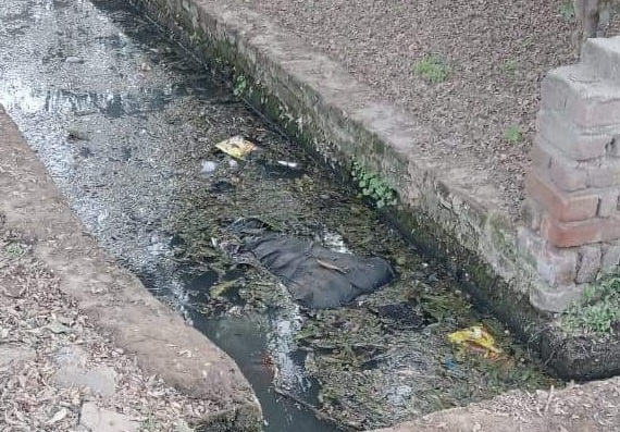 सड़क किनारे नाले में मिली युवक् की लाश।