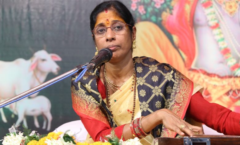 कथा व्यास हेमलता शर्मा के मुखारबिंद से कथा का रसपान कर रहे है श्रोता,