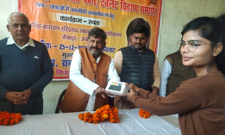 रुदौली तहसील क्षेत्र के नरसिंह नारायण हरिप्रसाद स्नातकोत्तर महाविद्यालय मीनापुर अयोध्या में 149 छात्र छात्राओं को स्मार्टफोन का वितरण किया गया। स्मार्टफोन पा कर छात्र छात्राओं के चेहरे पर आई मुस्कान, मुख्य अतिथि रुदौली विधायक रामचन्द्र यादव ने छात्र-छात्राओं को वितरित किया स्मार्टफोन। कालेज के प्रबंधक सुरेन्द्र तिवारी व अध्यापकगण सहित सैकड़ो की संख्या में लोग रहे मौजूद। *इंडिया न्यूज़ दर्पण के साथ अमर सिंह*