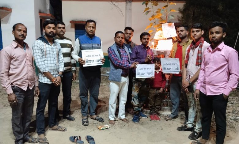 महोबा/सुगिरा- युवा क्रांति की युवा कमेटी के अध्यक्ष रविकरण पत्रकार के नेतृत्व में 14 फरवरी 2019 को हुए पुलवामा अटैक हमले को याद कर कैंडल मार्च निकाला एवं शहीदों को 2 मिनट मौन रहकर भाव सहित श्रद्धांजलि अर्पित की!