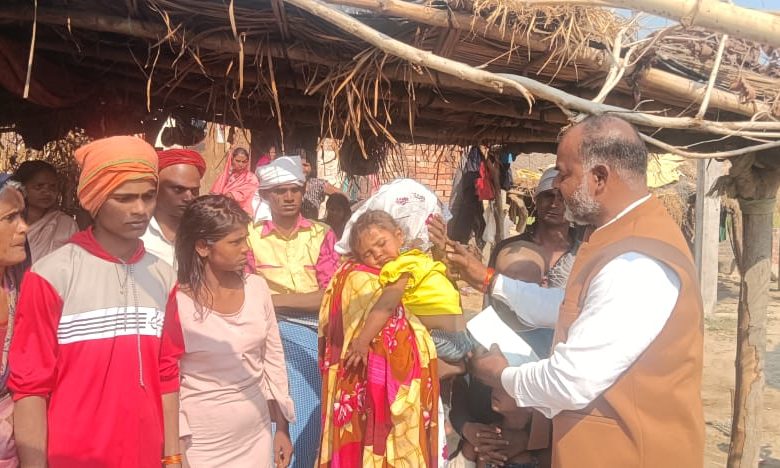 गरीब परिवार को प्रधान पुतान सिंह उर्फ छोटू मौर्य ने दस हजार रुपए दिया