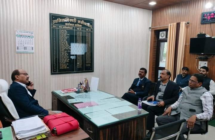 दल में मौजूद उत्तराखंड ओलंपिक एसोसिएशन के जनरल सेक्रेटरी डॉ डीके सिंह ने जिला अधिकारी बिजनौर उमेश मिश्रा से की मुलाकात।