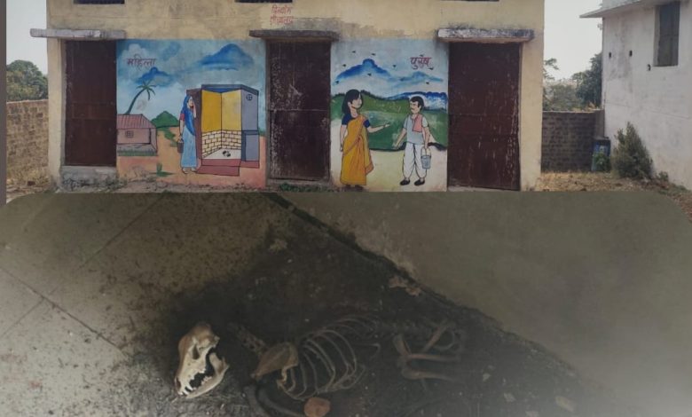 *शौचालय में दिखाई दिया कुत्ते का कंकाल*