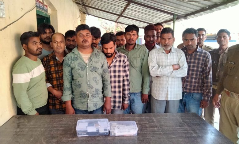दिनांक 15.03.2023 को थाना सदर बाजार पुलिस थाना क्षेत्र अन्तर्गत देखरेख शान्ति व्यवस्था चैकिग संदिग्ध वाहन/व्यक्ति में मामूर थी कि मुखविर खास द्वारा सूचना दी गयी कि शालीमार गार्डन के पीछे शादाब अली मो0 बीबीजई के मकान के बाहर पास के खाली प्लाट पर काफी संख्या में लोग जुआ खेल रहे है एवं शोर शराबा कर रहे है, इस सूचना पर विशवास कर थाना पुलिस टीम द्वारा बताये गये उपरोक्त स्थाना पर दविश देकर 13 नफर अभि0गण 1. महेन्द्र सिंह उर्फ सोनू पुत्र श्यामबाबू 2. पंकज पुत्र सुरेश कुमार 3. आमीर पुत्र महबूब हसन 4.साबिर पुत्र युनुस 5.एजाज हुसैन पुत्र शमशाद हुसैन 6.नरेश कुमार पुत्र बाबूराम 7.सद्दन पुत्र बब्बन 8. नियामत मलिक पुत्र खालिद मलिक 9.इमरान पुत्र सलीम 10. सत्तार खां पुत्र सरदार खां 11. सज्जन पुत्र नन्हे 12. नफीस अहमद पुत्र सब्बीर अहमद 13.प्रीतम पुत्र रघुनन्दन को समय करीब 03.00 बजे हिरासत पुलिस मे लिया गया। जिनके कब्जे से 80850 रुपये की (मालफड व जामा तलाशी) एवं 04 मोटर साइकिलें तथा 09 अदद मोबाइल फोन बरामद किये गये । गिरफ्तार शुदा अभियुक्तों से बरामदगी के आधार पर थाना सदर बाजार पर वैधानिक की जा रही है।