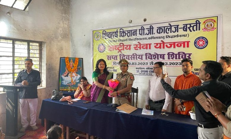शिवहर्ष किसान पी जी कॉलेज बस्ती के राष्ट्रीय सेवा योजना (एन0 एस0 एस0) के विशेष शिविर के दूसरे दिन प्रभारी निरीक्षक महिला थाना श्रीमती भाग्यवती पांडे द्वारा विशिष्ट अतिथि के रूप कॉलेज में छात्राओं को महिला संबंधी कानून की जानकारी देते हुए उन्हें को जागरूक किया गया