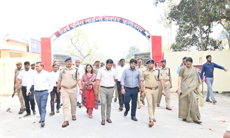मा0 मुख्यमंत्री श्री योगी आदित्य नाथ जी के जनपद कुशीनगर में सम्भावित आगमन/भ्रमण के दृष्टिगत श्रीमान् जिलाधिकारी कुशीनगर श्री रमेश रंजन एवं श्रीमान् पुलिस अधीक्षक कुशीनगर श्री धवल जायसवाल द्वारा रिजर्व पुलिस लाईन में स्थित हैलीपैड, कार्यक्रम स्थल तथा पार्किंग स्थल आदि के तैयारियों के सम्बन्ध में सुरक्षा व्यवस्था का जायजा लेते हुए उपस्थित अधिकारियों को समय से तैयारी पूर्ण करने हेतु निर्देशित किया।इस अवसर पर मुख्य विकास अधिकारी, अपर जिलाधिकारी, अपर जिलधिकारी न्यायिक, अपर पुलिस अधीक्षक, उपजिलाधिकारी सदर सहित प्रशासनिक एवं पुलिस के अन्य अधिकारीगण उपस्थित रहे।