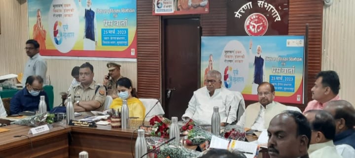 सुल्तानपुर – योगी सरकार के छह साल पूरे होने के उपलक्ष्य में विकास भवन में विकास पुस्तिका विमोचन कार्यक्रम। एमएलसी शैलेंद्र सिंह, विधायक सीताराम वर्मा, राजेश गौतम, सांसद प्रतिनिधि रंजीत कुमार, सपा विधायक ताहिर खां के प्रतिनिधि रिजवान के साथ डीएम जसजीत कौर, एसपी सोमेन वर्मा और सीडीओ अंकुर कौशिक मौजूद। प्रोजेक्टर के माध्यम से सुनाया गया सीएम योगी आदित्यनाथ का संबोधन।