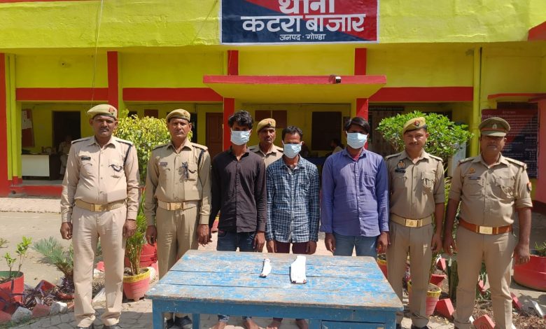 उक्त निर्देश के अनुक्रम में थाना कटराबाजार पुलिस द्वारा क्षेत्र भ्रमण के दौरान मुखबिर खास की सूचना पर मुहम्मदपुर बाजार के पास से गोवंश की तस्करी करने वाले 03 आरोपी अभियुक्तों- 01. छोटके उर्फ सफीक 02. मुहम्मद जाहिद उर्फ छोटू 03. लाडले को गिरफ्तार कर उनके कब्जे से 03 राशि गोवंश व 01 अदद मोटरसाइकिल(UP43Y1202), 01 अदद नाजायज चाकू व 01 अदद बांका बरामद किया गया। गिरफ्तार अभियुक्तों के विरुद्ध थाना कटराबाजार में सुसंगत धाराओं में अभियोग पंजीकृत कर विधिक कार्यवाही की गयी।