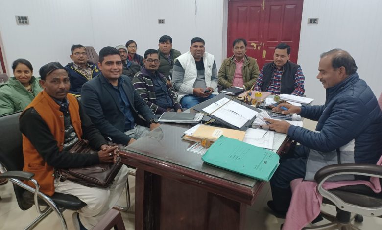 फफूंँद,औरैया। भाग्यनगर विकास खण्ड की सभागार में बुधवार को खण्ड विकास अधिकारी विश्वनाथ पाल व एडीओ पंचायत अतुल मिश्रा ने विकास कार्यो की समीक्षा की गई। जिसमें सभी सचिवों को प्रधान मंत्री आवास योजना, मनरेगा आवास योजना की सूची से छूटे लाभार्थियों की सूची दो दिनों में अनिवार्य रूप से जमा करने के कड़े निर्देश दिए तथा उन्होंने सभी ग्राम पंचायत सचिवों को कड़े निर्देश दिए गये कि विकास कार्यों में किसी भी प्रकार की लापरवाही बर्दाश्त नहीं की जाएगी। बैठक में एडीओ पंडित अतुल मिश्रा ने पंचायत सचिवालय, सामुदायिक शौचालय, पंचायत सहायक केयर, मानदेय सामान्य लाभ निधि 1,1 प्रतिशत धनराशि, रिट्रोफिटिंग आदर्श ग्राम पंचायत दौलतपुर,उमरी व सेहुद की गहन समीक्षा की गई बैठक में सभी ग्राम पंचायत सचिव उपस्थित रहे।