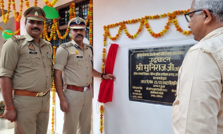 अयोध्या जनपद के बाबा बाजार थाने के नवनिर्मित भवन का शनिवार को समारोहपूर्वक उद्घाटन हुआ। पुलिस उपमहानिरीक्षक/वरिष्ठ पुलिस अधीक्षक मुनिराज जी ने उद्घाटन के बाद नवनिर्मित महिला हेल्प डेस्क, मालखाना, शस्त्रागार, सीसीटीएनएस कार्यालय का अवलोकन कर आवश्यक निर्देश दिए। एसएसपी ने कहा कि नया थाना बनने के बाद आस-पास के करीब 40 गांव के लोगों की समस्याओं का समाधान होगा साथ ही अपराधों पर भी लगाम लगेगा। उन्होंने बताया कि पहले गांव के लोगों को अपनी समस्या लेकर मवई थाना पर जाना पड़ता था, लेकिन अब बाबा बाजार थाने पर ही समस्याओं का समाधान हो जाएगा। एसएसपी ने जनता से बेहतर संवाद स्थापित करने तथा अपराध नियन्त्रण पर विशेष सतर्कता बरतने के लिए मातहतों को निर्देश दिए। इस अवसर पर क्षेत्राधिकारी सत्येंद्र भूषण तिवारी, नायब तहसीलदार अनूप कुमार श्रीवास्तव, ग्राम प्रधान भवानीपुर दुर्गा प्रसाद रावत, भाजपा नेता महेंद्र पांडेय, संजय पाण्डेय, शिवप्रसाद यादव आदि मौजूद रहे।