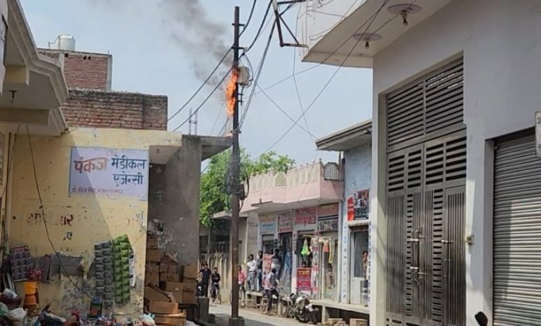 एटा के एमपी नगर में बिजली के लट्ठे पर लगी अचानक आग॥