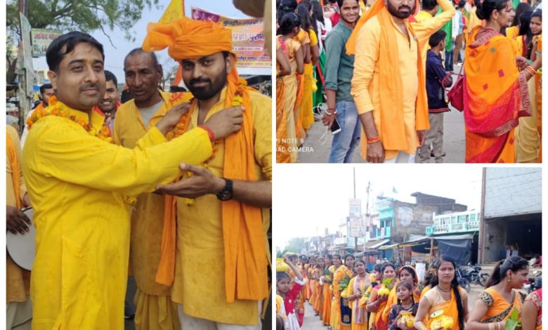 विहिप बजरंग दल नगर संयोजक कमलापति गुप्ता के नेतृत्व में निकली भव्य कलश यात्रा