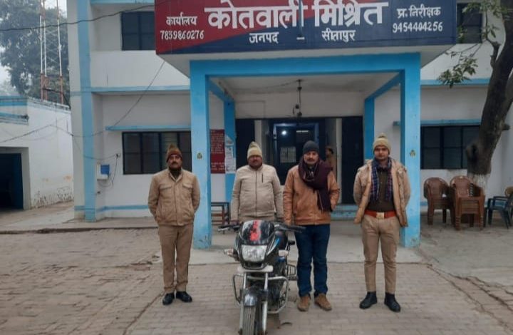 मिश्रिख सीतापुर / वरिष्ठ अधिकारियों के निर्देश पर चलाए जा रहे अभियान के तहत फरार एवं वांक्षित वारंटियों व आटोलिफ्टर गैंग की गिरफ्तारी के संबंध में चलाए जा रहे अभियान के तहत आज प्रभारी निरीक्षक जितेन्द्र ओझा के कुशल नेतृत्व में कोतवाली पुलिस टीम में शामिल उपनिरीक्षक शैलेंद्र सिंह संख्या द्वारा के साथ कांस्टेबल दुष्यंत सिंह कांस्टेबल पुष्पेंद्र ने आज सुबह ग्राम मिर्जापुर निवासी विमलेश मिश्रा उर्फ छोटे मिश्रा पुत्र शांति स्वरूप शांति निवासी वेरसापुर के पास से सराय बीबी रेलवे क्रॉसिंग के पास चोरी की एक मोटरसाइकिल नम्बर यूपी 34 ऐके 4913 बरामद करने में सफलता हासिल की है ।