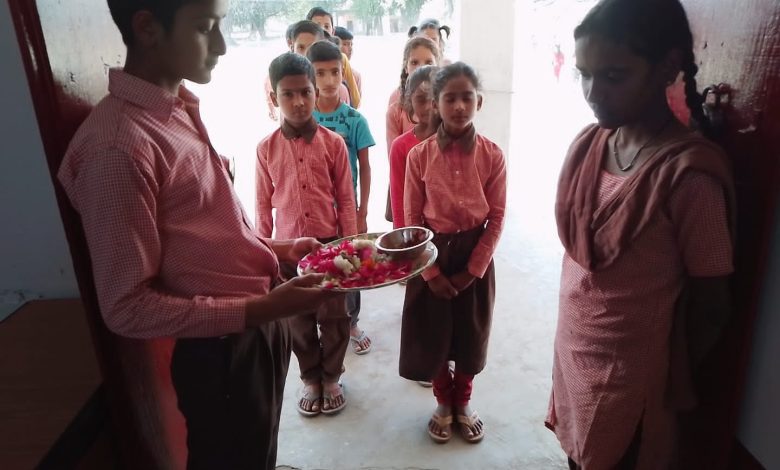 परिवर्तन प्रकृति का नियम है प्रतिवर्ष छात्र एवं छात्राएं एवं शिक्षक अपनी नई कक्षा में नई ऊर्जा एवं नए संकल्पों के साथ प्रवेश करते हैं इसी क्रम मैं आज उच्च प्राथमिक विद्यालय चंदनपुर में प्रवेश उत्सव मनाया गया जिसमें कक्षा 6 की कक्षा अध्यापिका श्रीमती राखी मिश्रा ने सभी छात्र छात्राओं को नई कक्षा में तिलक लगाकर उपहार व फ्रूटी के साथ प्रवेश कराया जिसमें बच्चों के अंदर भारी उत्साह देखने को मिला।