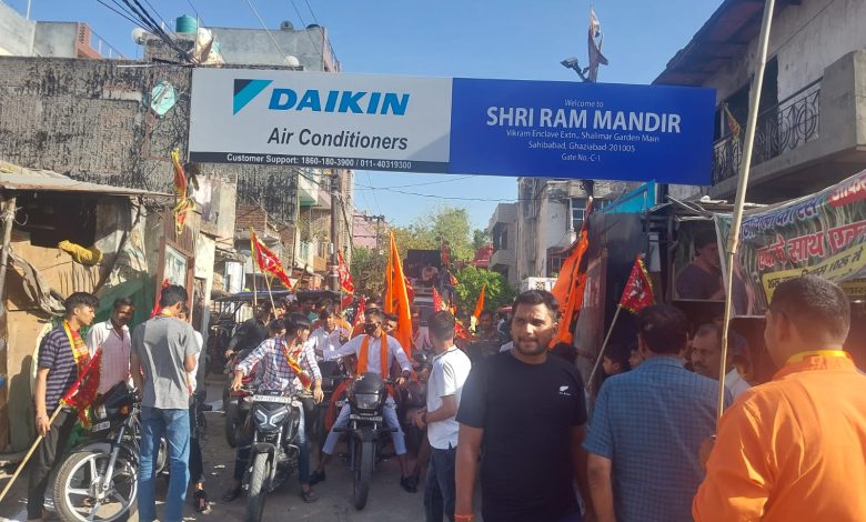गाज़ियाबाद के स्थित शालीमार गार्डन श्रीराम मन्दिर से विशाल शोभा यात्रा निकाली गयी